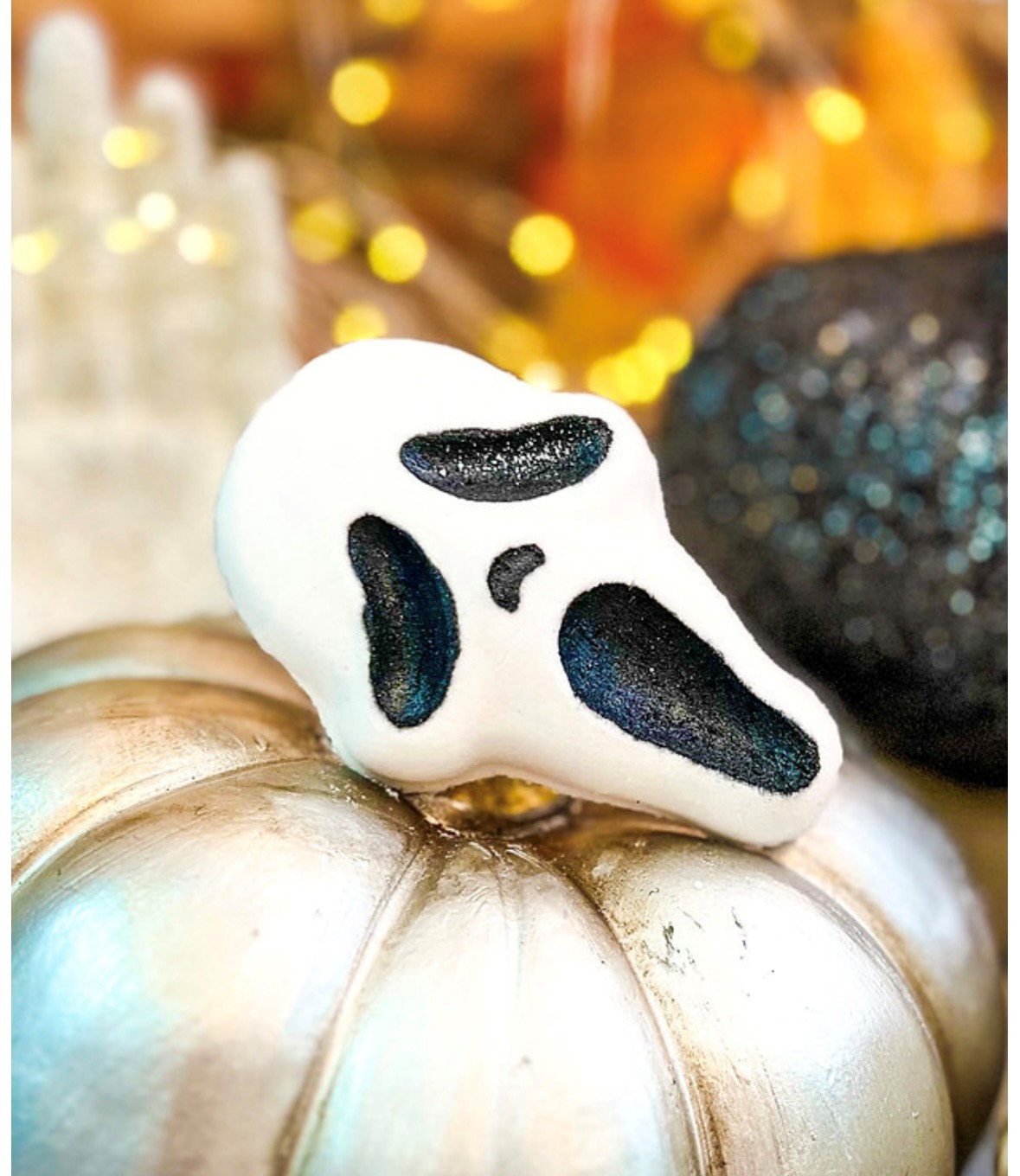 Notre bombe Scream, inspirée du masque le plus mythique du cinéma d’horreur, débarque juste à temps pour ajouter un p’tit thrill à ta routine détente.