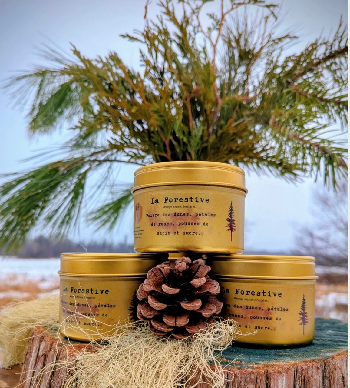 La Forestive, c’est un mélange d’épices forestières aussi fier que délicat : pétales de rose, jeunes pousses de sapin, poivre des dunes et un soupçon de sucre.