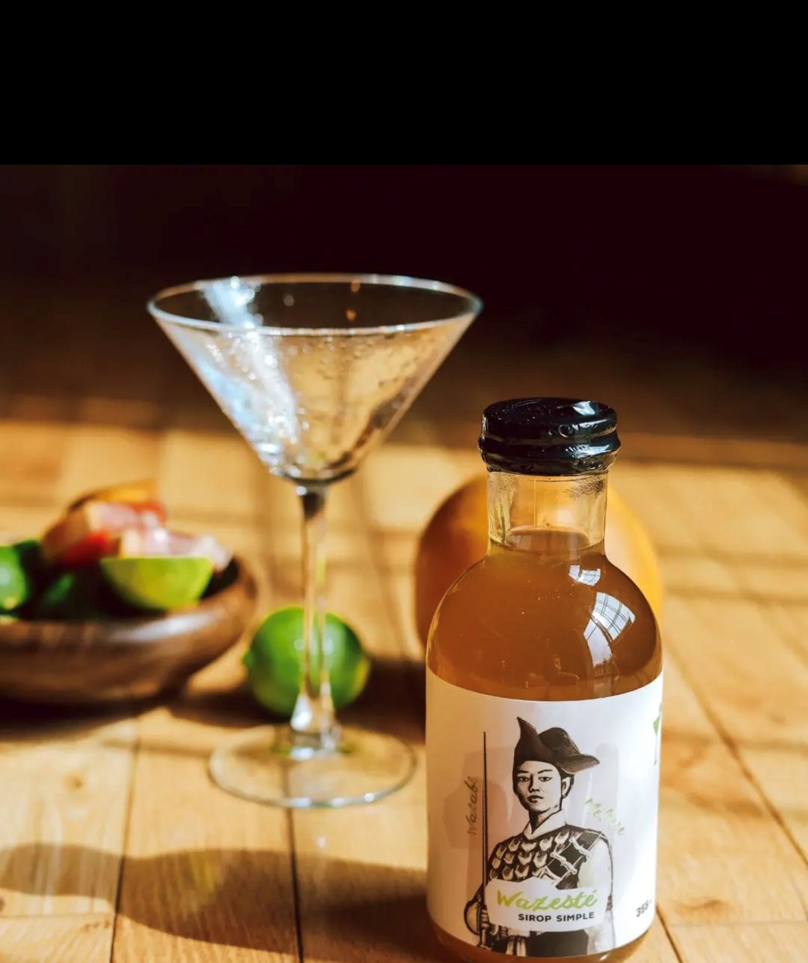 Le sirop simple Wazesté, au wasabi et à la mélisse, est citronné, mordant et herbal.